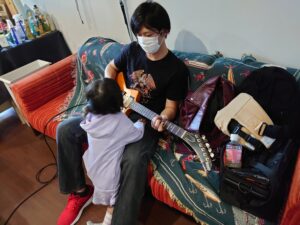 ギターは1本しかなく、ノーマル・チューニングで無理やり弾いてました。