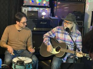 今日も、仕切るだけのつもりだったけど、指の調子が良くなったから、アダムと数曲演奏することになりました。