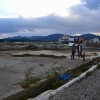 再び、打ち上げられた船のところへ行って、お花を捧げました。