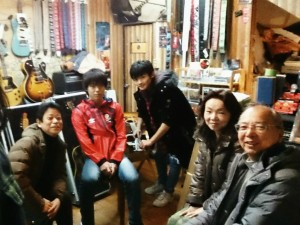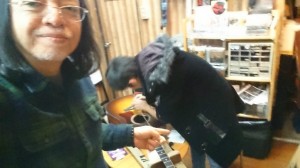 今日は、仏壇屋のFさんの息子に、先日買ってくれたギターの弦の張り方を指導。