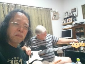 ジェリーは、ベースのチューニング開始。