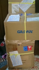 アメリカへ送るギター、CD、Tシャツなどをパッキングして発送しました。